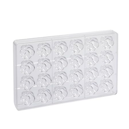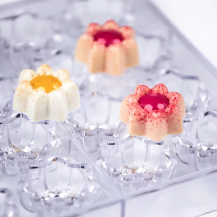 Khuôn socola Praline Flora bằng polycarbonate, không chứa BPA, được thiết kế với họa tiết hoa 5 cánh gợn sóng tinh tế, phù hợp cho các dòng praline và chocolate thủ công. Khuôn cho khả năng tạo hình đồng đều, giúp thành phẩm sắc nét, đáp ứng tốt nhu cầu sử dụng trong tiệm bánh, cửa hàng chocolate và bếp chuyên nghiệp